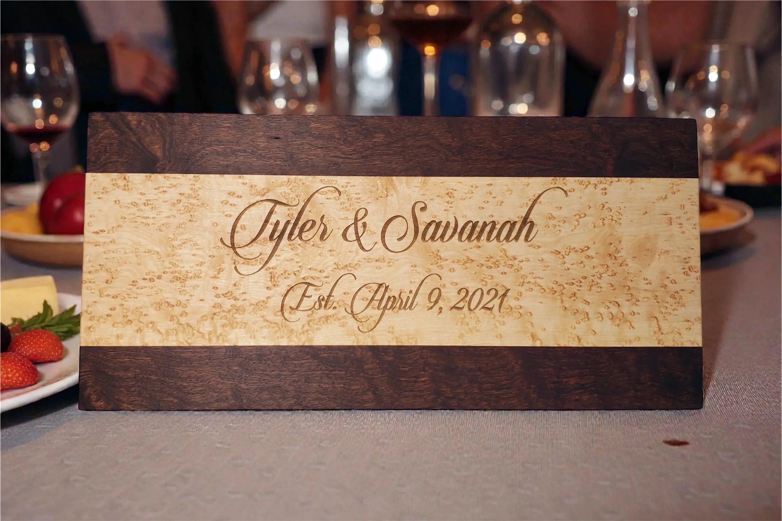 Yes! Most KRH Cutting and Serving Boards can be personalized with custom laser engraving in several styles and fonts. Custom engraving adds a meaningful, personalized touch to any handcrafted cutting or charcuterie board. Visit https://www.krhwoodworking.com/custom-laser-engraving-options for more information.