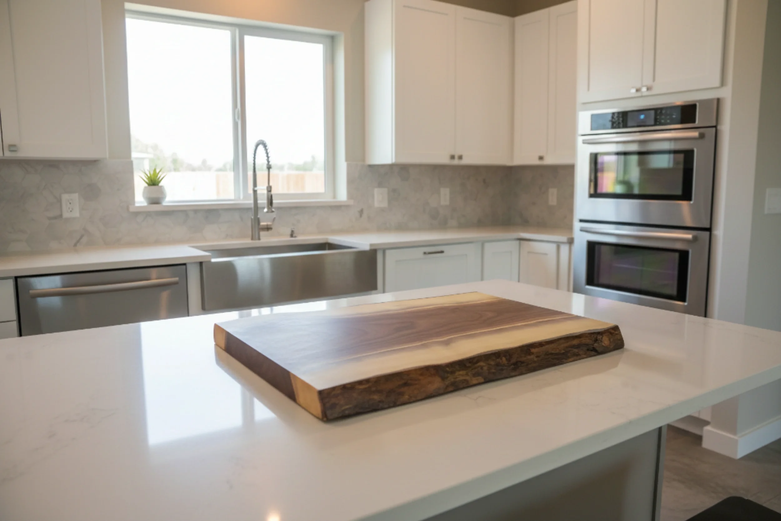 End Grain or Edge Grain Boards are best used to cut food on. The exposed End Grain/Edge Grain will take knife cuts better.